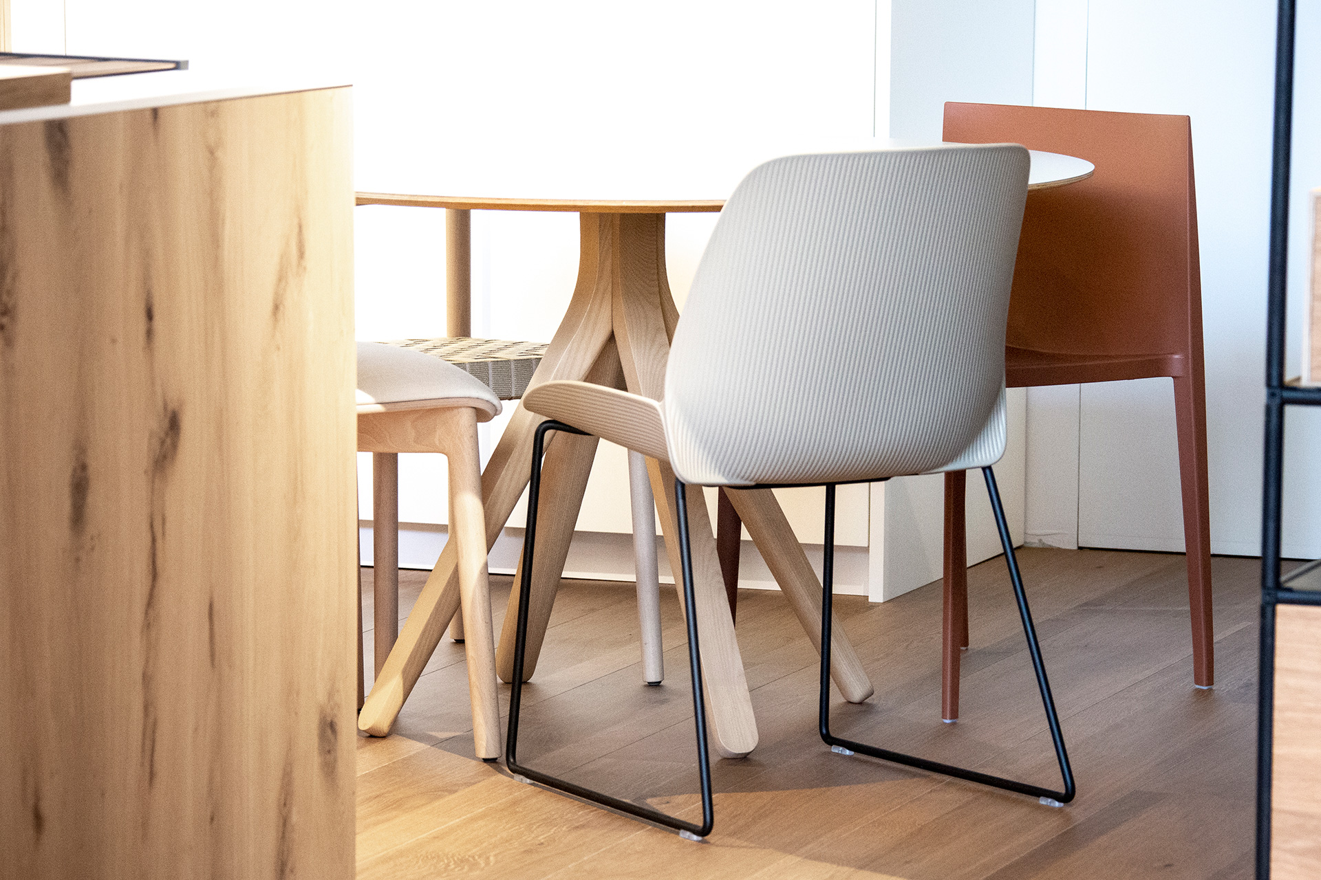 Andreu World-en aulki eta mahaiak diseinu berezia dute, eta zure etxeko hainbat lekutan funtzionatzen dute.